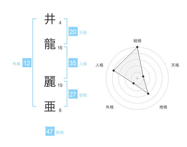 井龍 麗亜さんの総格は47画の5点!