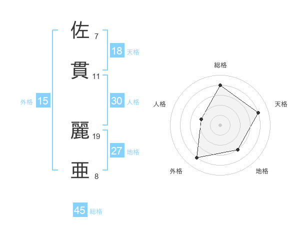 佐貫 麗亜さんの総格は45画の4点!