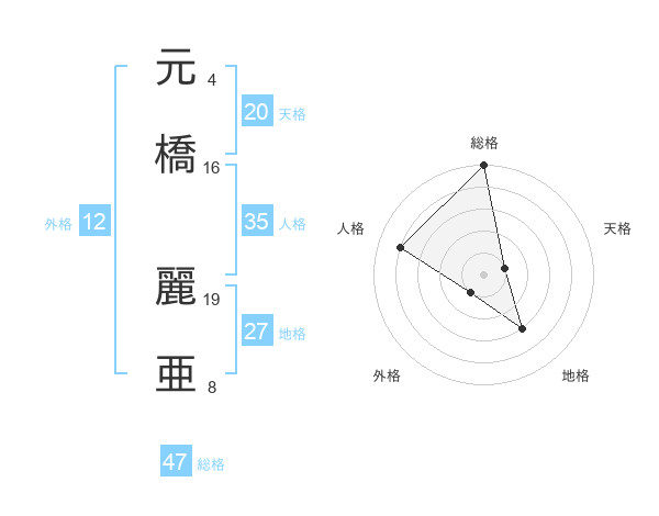 元橋 麗亜さんを姓名の画数から五運を鑑定