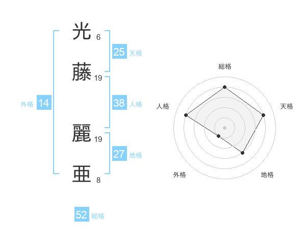 光藤 麗亜さんを姓名の画数から五運を鑑定