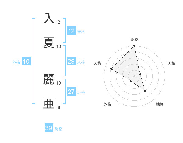 入夏 麗亜さんを姓名の画数から五運を鑑定