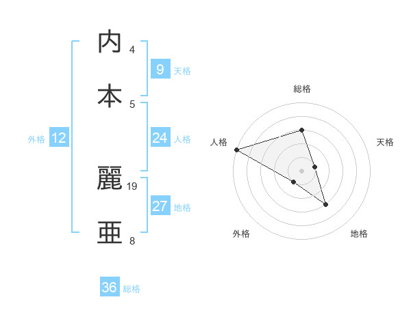 内本 麗亜さんを姓名の画数から五運を鑑定