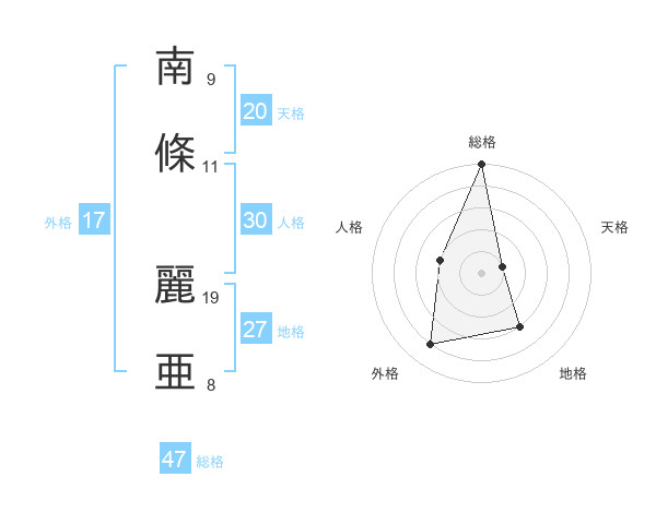 南條 麗亜さんの総格は47画の5点!