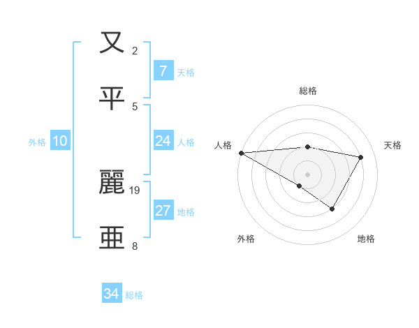 又平 麗亜さんの総格は34画の2点!