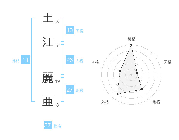 土江 麗亜さんの総格は37画の5点!