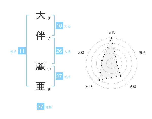 大伴 麗亜さんを姓名の画数から五運を鑑定