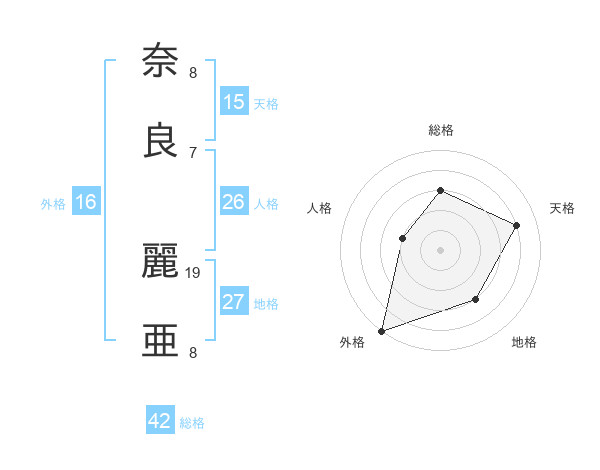 奈良 麗亜さんを姓名の画数から五運を鑑定