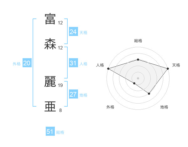 富森 麗亜さんを姓名の画数から五運を鑑定