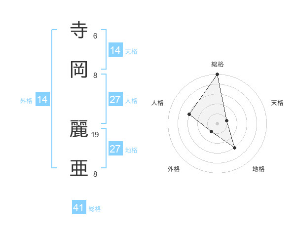 寺岡 麗亜さんの総格は41画の5点!