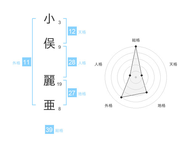小俣 麗亜さんの総格は39画の5点!