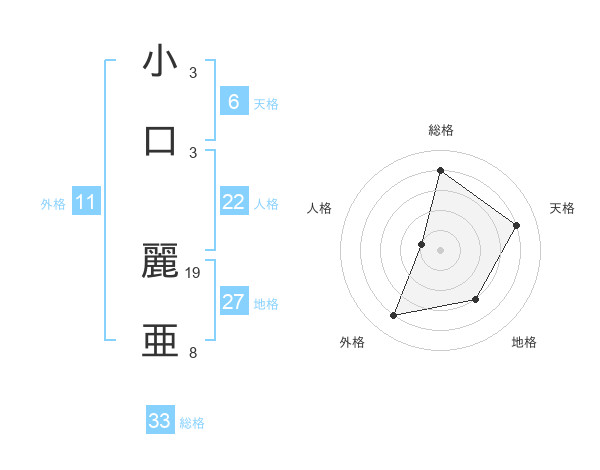 小口 麗亜さんの総格は33画の4点!