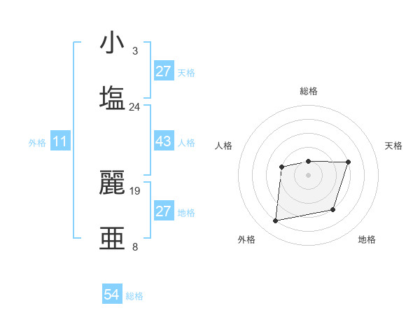 小塩 麗亜さんの天格は27画の3点!