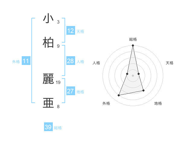 小柏 麗亜さんの総格は39画の5点!