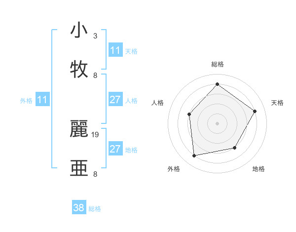 小牧 麗亜さんを姓名の画数から五運を鑑定