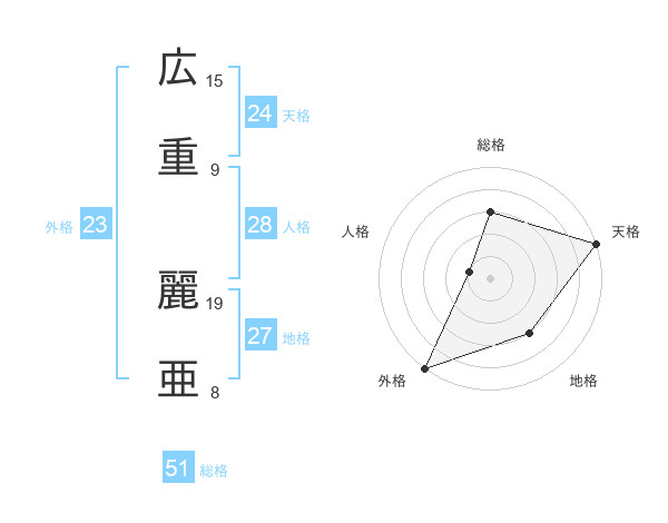 広重 麗亜さんを姓名の画数から五運を鑑定