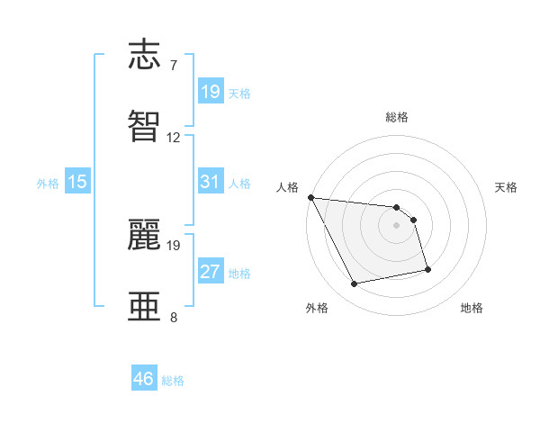 志智 麗亜さんを姓名の画数から五運を鑑定