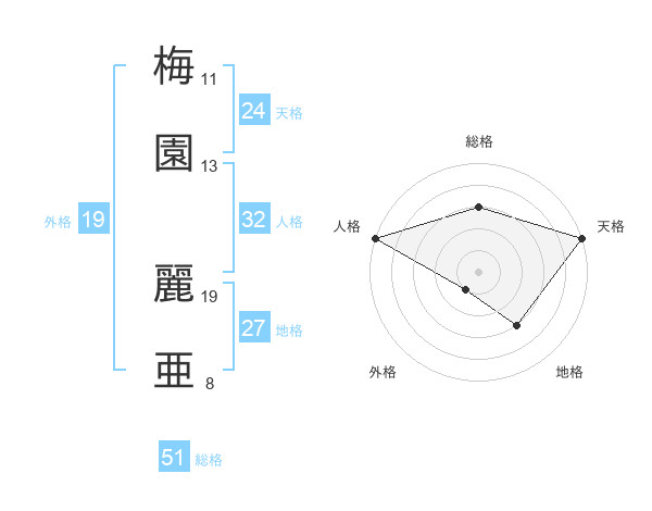 梅園 麗亜さんの総格は51画の3点!