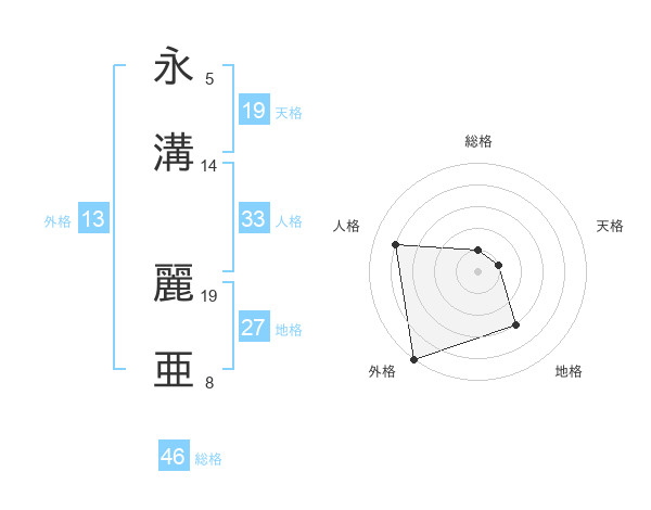 永溝 麗亜さんの総格は46画の1点!