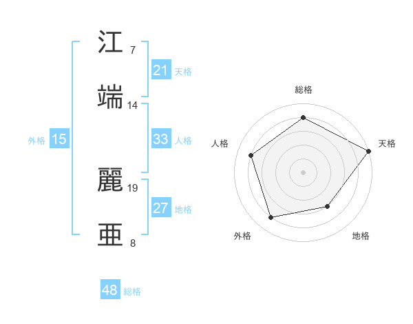 江端 麗亜さんの天格は21画の5点!