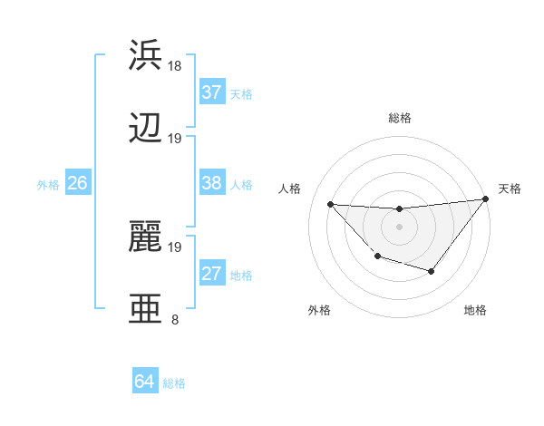 浜辺 麗亜さんの天格は37画の5点!
