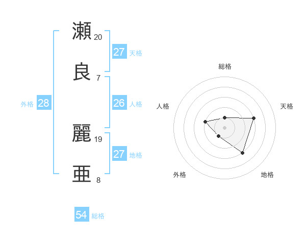 瀬良 麗亜さんの地格は27画の3点!