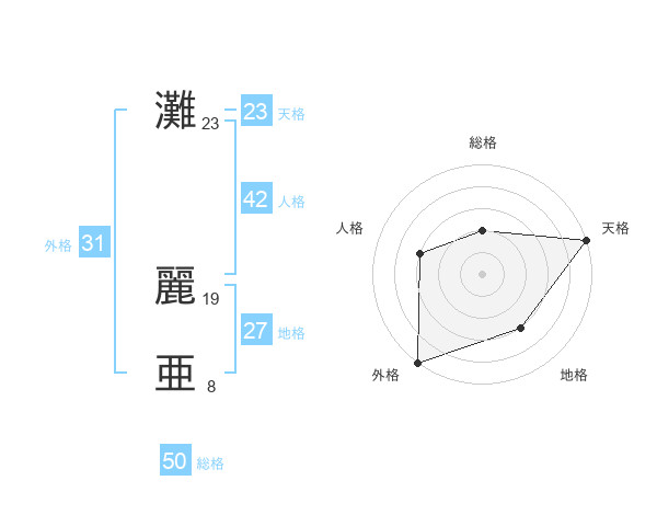 灘 麗亜さんを姓名の画数から五運を鑑定