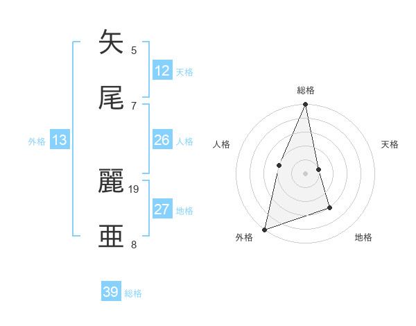 矢尾 麗亜さんを姓名の画数から五運を鑑定