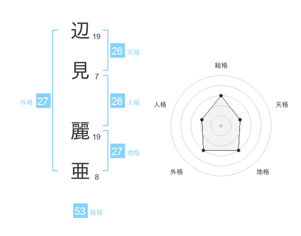 辺見 麗亜さんを姓名の画数から五運を鑑定