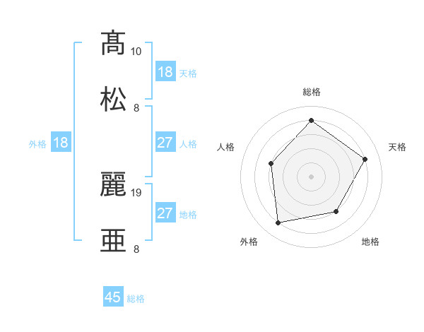 髙松 麗亜さんの総格は45画の4点!