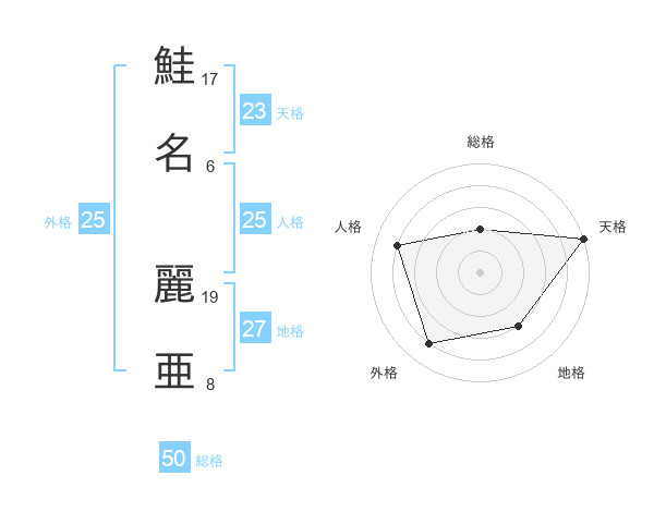 鮭名 麗亜さんを姓名の画数から五運を鑑定