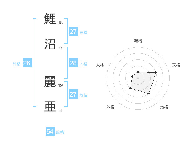 鯉沼 麗亜さんの総格は54画の1点!