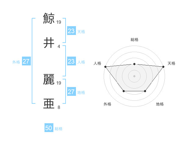 鯨井 麗亜さんの総格は50画の2点!