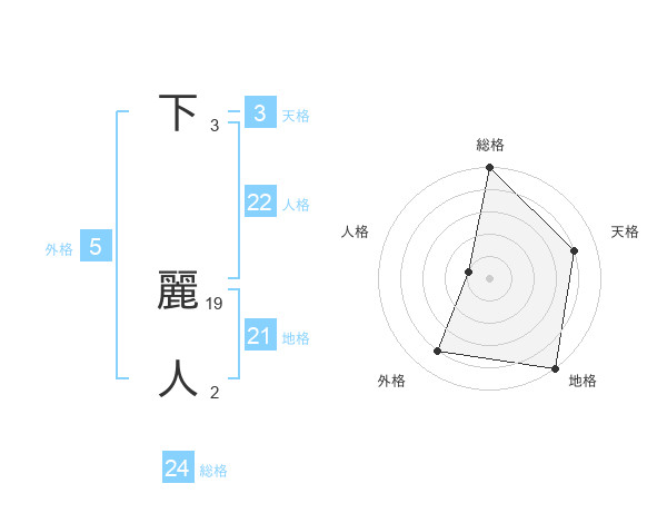 下 麗人さんの総格は24画の5点!