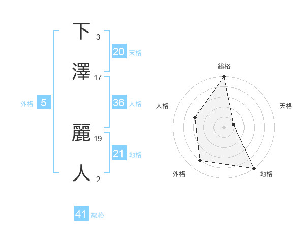 下澤 麗人さんの天格は20画の1点!