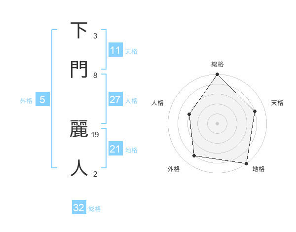 下門 麗人さんの総格は32画の5点!