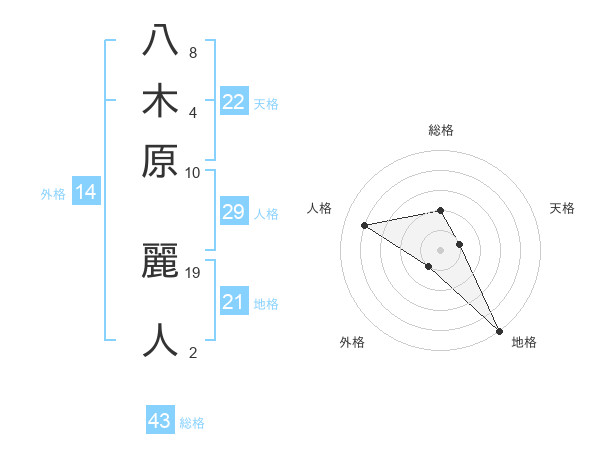 八木原 麗人さんを姓名の画数から五運を鑑定