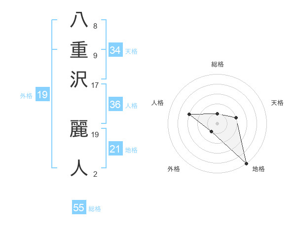八重沢 麗人さんの総格は55画の1点!