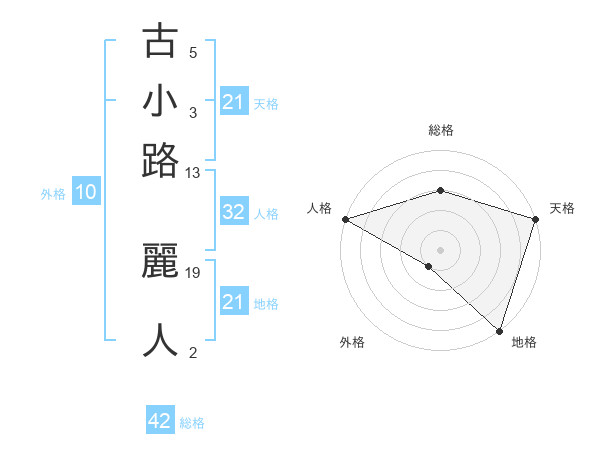古小路 麗人さんの地格は21画の5点!