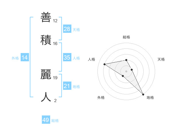 善積 麗人さんの総格は49画の2点!