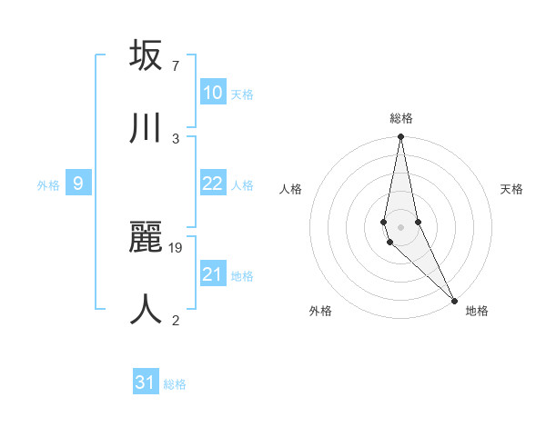 坂川 麗人さんの総格は31画の5点!