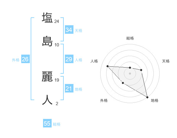 塩島 麗人さんの総格は55画の1点!