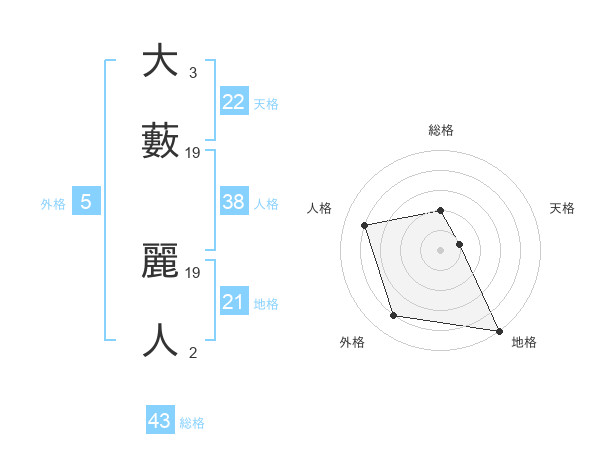 大藪 麗人さんを姓名の画数から五運を鑑定