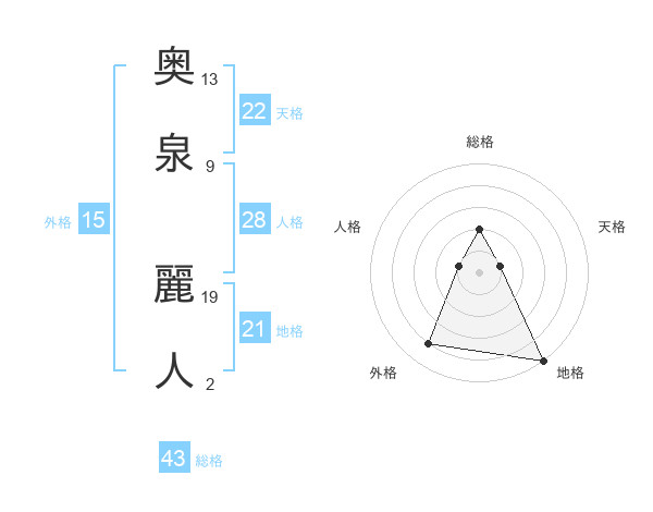 奥泉 麗人さんの天格は22画の1点!