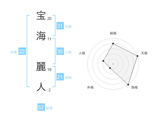 宝海 麗人さんの外格は22画の1点!