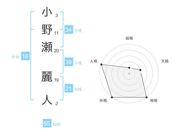 小野瀬 麗人さんを姓名の画数から五運を鑑定