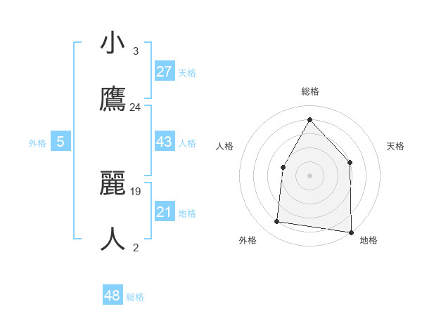 小鷹 麗人さんを姓名の画数から五運を鑑定