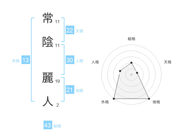 常陰 麗人さんの総格は43画の2点!