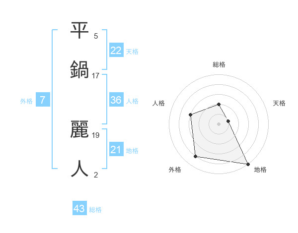 平鍋 麗人さんの天格は22画の1点!