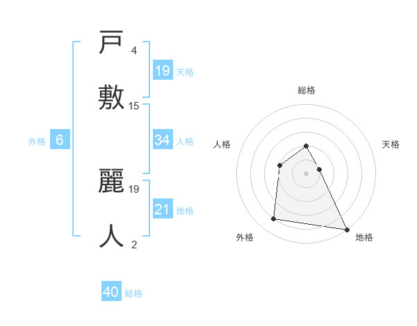戸敷 麗人さんの地格は21画の5点!