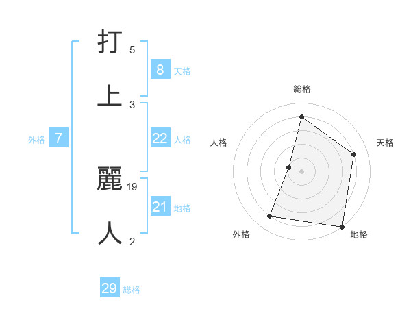 打上 麗人さんの総格は29画の4点!